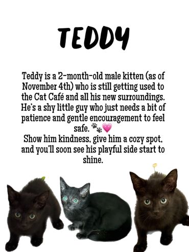 Meet our handsome Prince Chino, Our Brave Graduate 👑🐾 Chino recently earned his big promotion to the adult room and wow, was it emotional! He is one and We always hope our kittens find their forever families before moving on from the cat café, so watching Chino graduate pulled at our hearts. But we are so proud of how far this handsome boy has come. Chino started out extremely skittish, unsure of people and terrified of being touched. With patience, love, and lots of gentle encouragement, he has blossomed into a cat who now enjoys pets, affection, and every treat he can get his paws on! 🍪💕